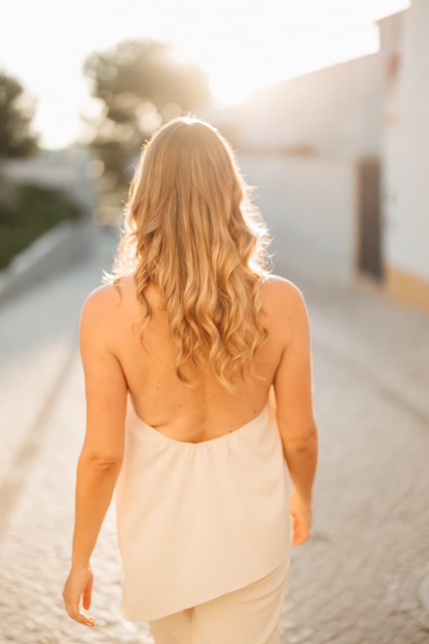 Conjunto bege elegante, composto por calças fluidas e top halter assimétrico. Um look sofisticado e atual, ideal tanto para cerimónias como para o dia a dia de quem gosta de estar sempre impecável. As calças têm um caimento leve e elegante, e o top, com o seu corte assimétrico, traz um toque moderno e feminino. Perfeito para quem procura um conjunto versátil, com presença e conforto.