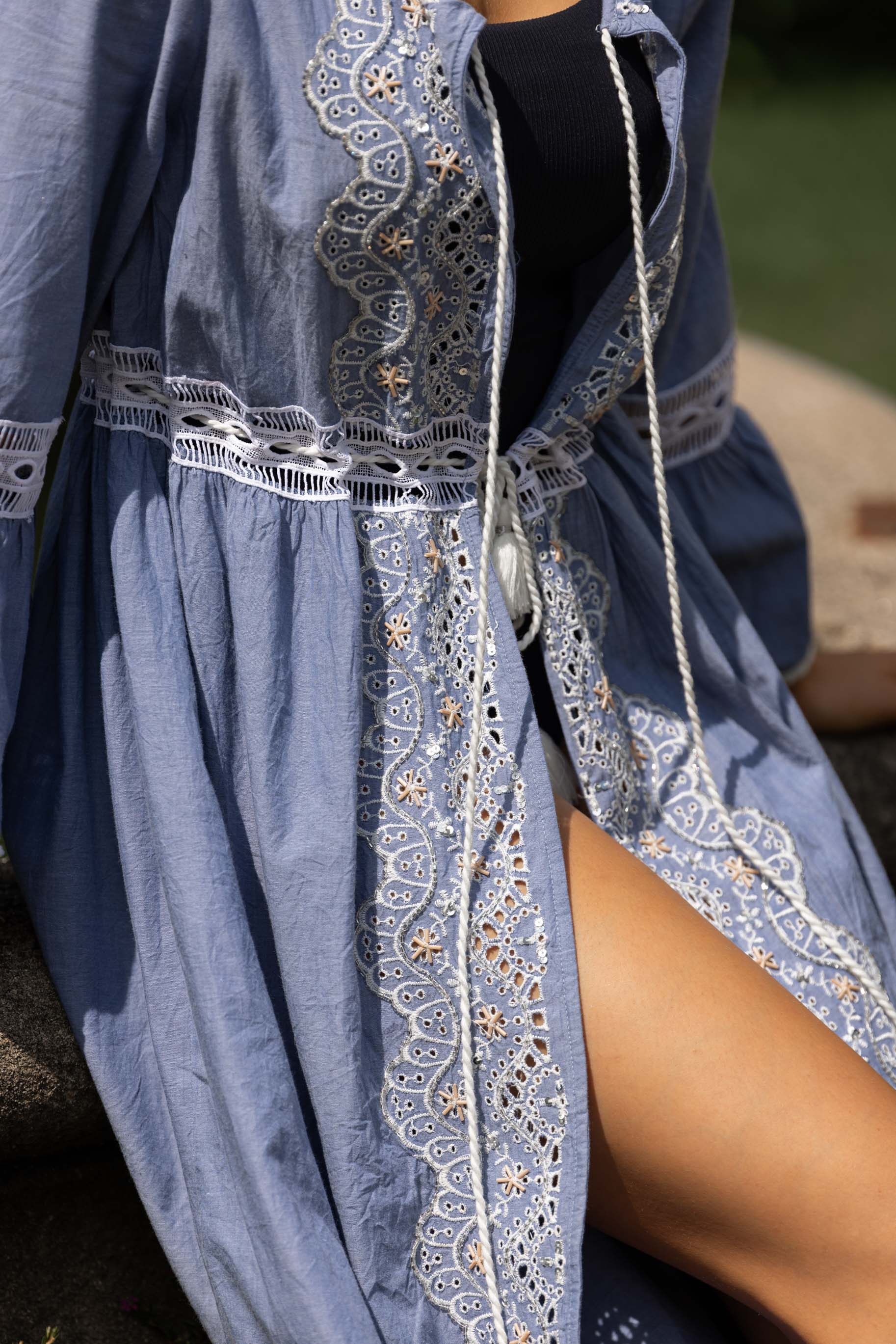 O quimono perfeito, feita à mão, para quem procura conforto e elegância para este verão. A sua modelagem solta e fluída proporciona liberdade de movimento e uma sensação de leveza.