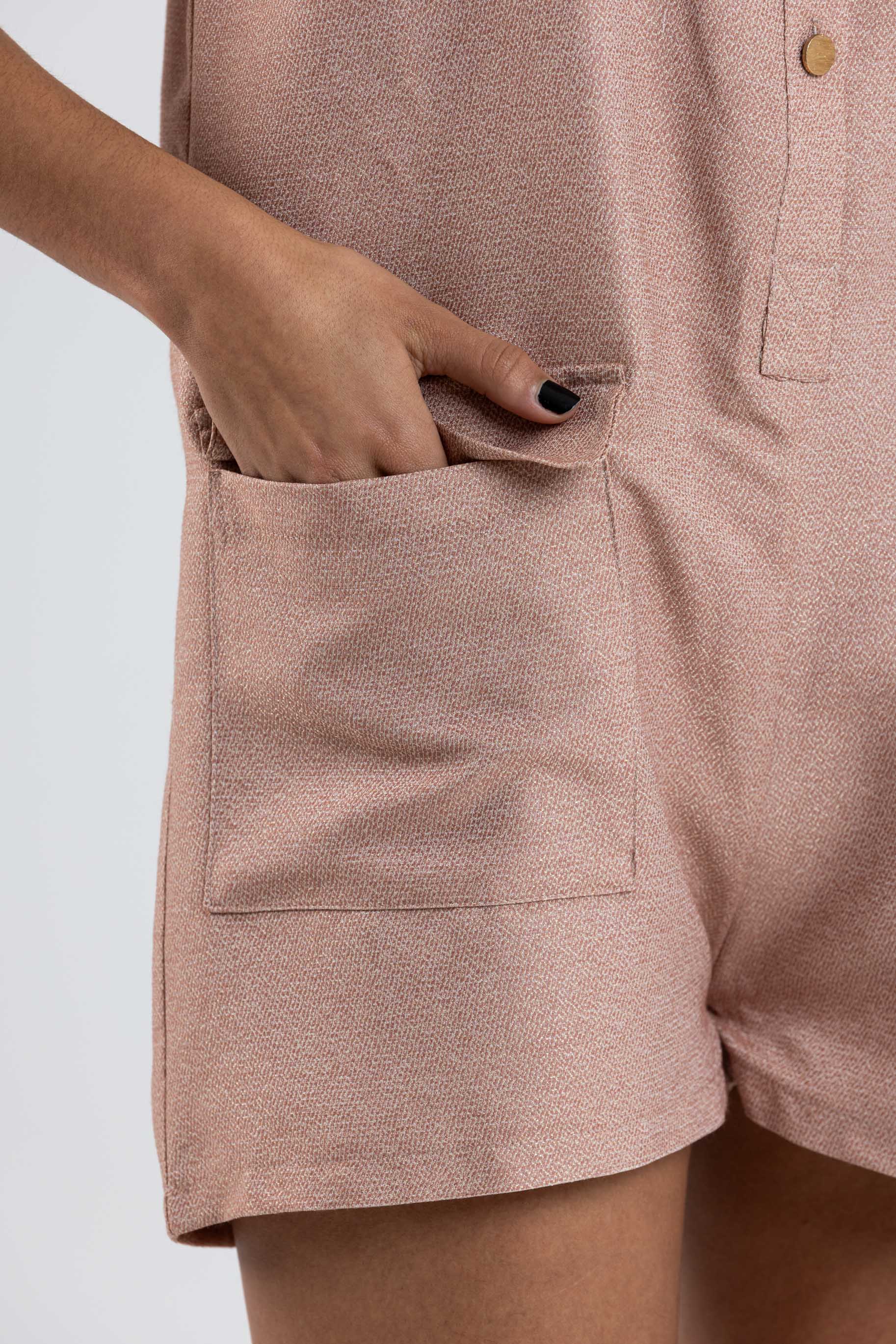 Com um corte e tecido sofisticados, este macacão é uma peça atemporal e muito versátil. Os botões dourados dão um toque de elegância.